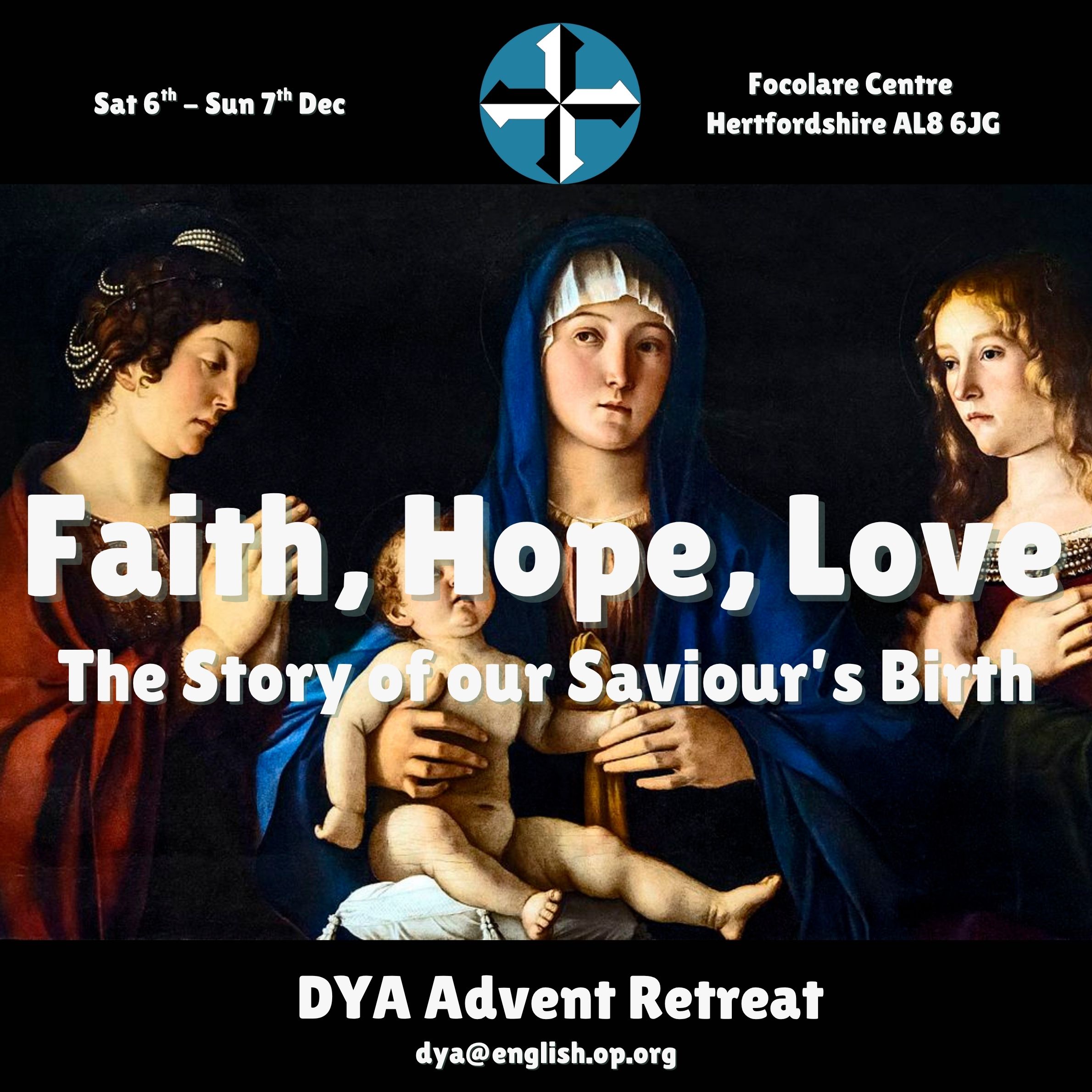 On this Advent retreat, we will prepare for Christmas by exploring these three theological virtues through the stories of Jesus’ birth, particularly the infancy narratives in St Luke’s Gospel. What can Zechariah teach us about faith? How is the Blessed Virgin Mary an exemplar of hope? What role does charity play in the meeting between Mary and her cousin Elizabeth?
