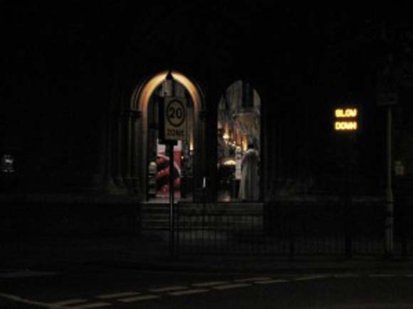 With the main West doors of the church open, the candlelit sanctuary looks particularly beautiful from the road. Many passers by have stopped to chat, light a candle or offer prayer: for some, this has been the first time they have seen the interior of the austere-looking building that they pass by daily.