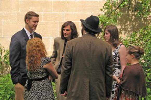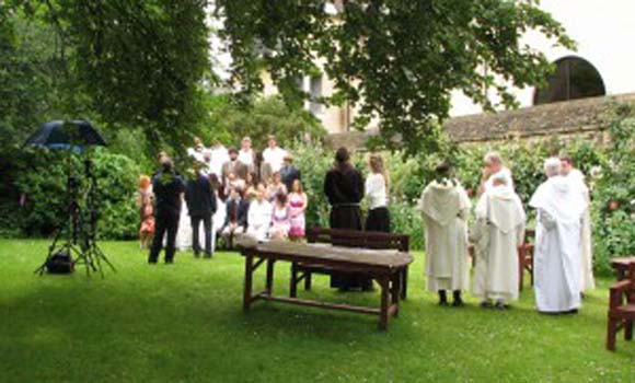 On Friday 15 June, Blackfriars Hall marked the end of the academic year with a Garden Party. After a formal photo with our visiting students, all relaxed with a glass (or more!) of wine, as well as some strawberries and cream. The end of the year is poignant as people move on to new things and the year’s events are recalled. As if on cue, the Lord sent showers of blessings and we moved the party indoors. Below are photos from this event: