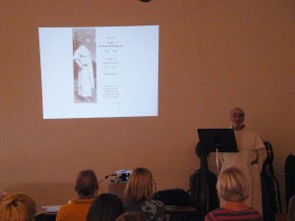 Over the years, Spode Music Week has managed to maintain its Catholic ethos. Everyday Mass is celebrated, the highlight of the week being the final Mass in which the course work is performed – this year it was Vaughan William’s Mass in G Minor, a work that was chosen to commemorate the 50th anniversary of Vaughan Williams’ death. Compline is also sung every evening. One of the most popular compline settings among Spode participants was composed by the composer Anthony Milner, the brother of our very own Austin Milner OP. This year, Fr Austin gave a talk about Conrad (Steven) Pepler’s life before he joined the order and his association with Eric Gill. Another very interesting talk was given by the composer Judith Bingham who spoke about how she goes about writing liturgical music.